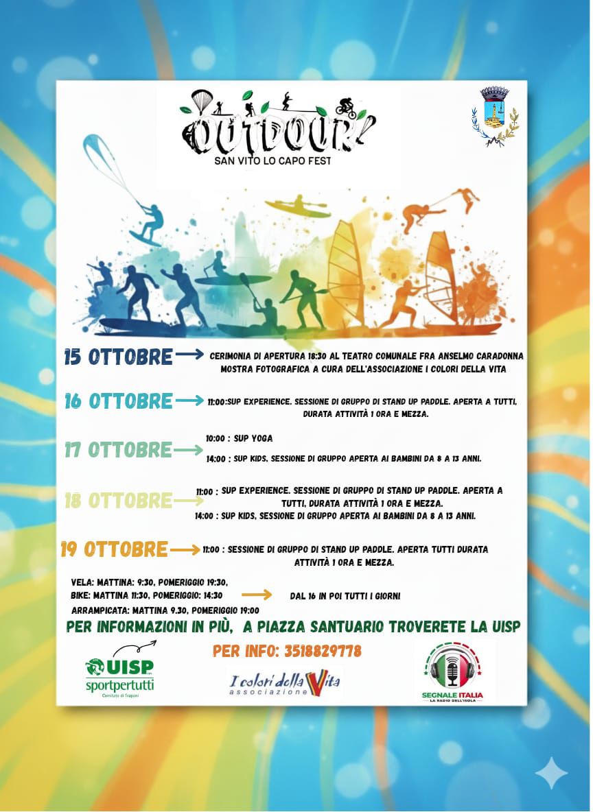 Torna dal 12 al 15 ottobre l’Outdoor San Vito Lo Capo Fest, un appuntamento sportivo che ogni anno raduna in Sicilia Occidentale sportivi e appassionati provenienti da ogni dove.